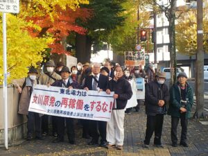 原告は「どこから見ても住民の安全確保など望めない避難計画の下での女川原発再稼働はあり得ない! 再度、司法の場でトコトン審理を!」と訴え、なんとか再稼働を止める決意で頑張っています。